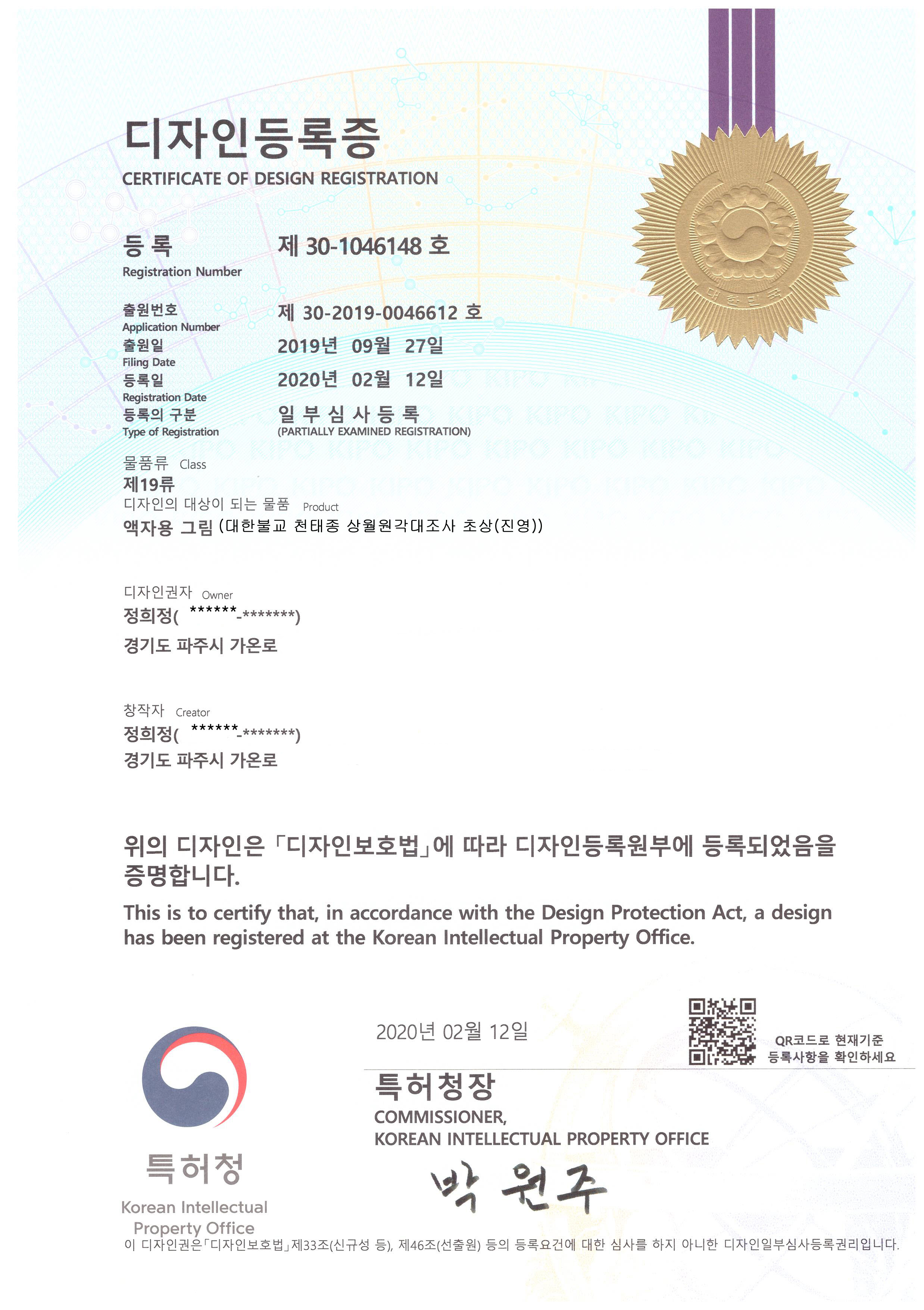 ´ëÇѺұ³ õÅÂÁ¾ »ó¿ù¿ø°¢´ëÁ¶»ç Áø¿µ µðÀÚÀÎ ÀúÀÛ±Ç ¹× ƯÇã Ãâ¿ø µî·Ï ¿Ï·á